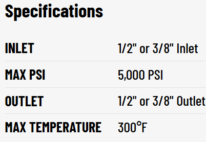 Temperature Resistance: It is built to withstand high-temperature fluid applications up to 300°F, making it ideal for hot water pressure washing and steam applications.