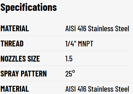The PNR 1/4" MNPT 25° 1.5 Stainless Steel Spray Nozzle
