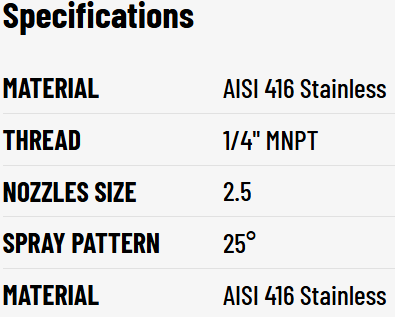 The PNR 1/4" MNPT 25° 2.5 Stainless Steel Spray Nozzle