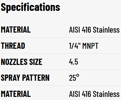 The PNR 1/4" MNPT 25° 4.5 Stainless Steel Spray Nozzle