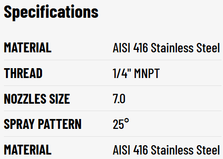 The PNR 1/4" MNPT 25° 7.0 Stainless Steel Spray Nozzle