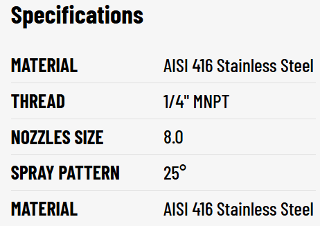 The PNR 1/4" MNPT 25° 8.0 Stainless Steel Spray Nozzle