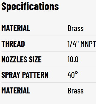 The PNR 1/4" MNPT 40° 10.0 Brass Soaper Nozzle