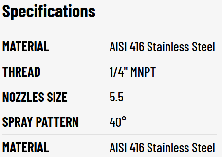 The PNR 1/4" MNPT 40° 5.5 Stainless Steel Spray Nozzle