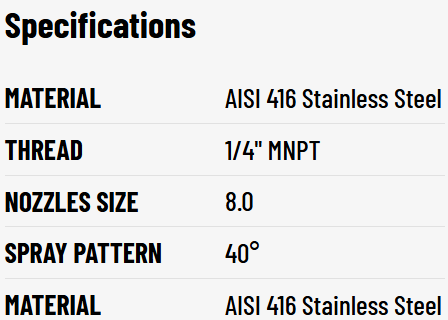 The PNR 1/4" MNPT 40° 8.0 Stainless Steel Spray Nozzle